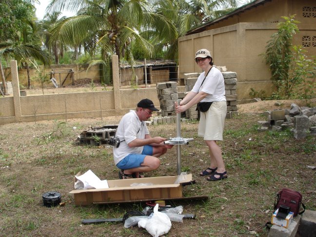 16-03-2006 Tom TY4TW and Ron TY5WP assembling the Spider Beam antenna |
