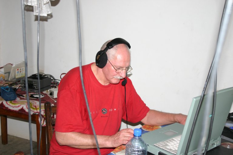 19-03-2006 Andrea TY5MR operating his radio and Claudia TY5LEO |