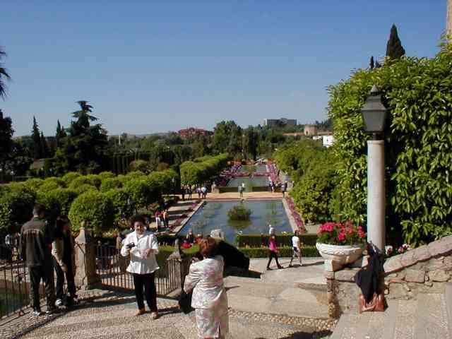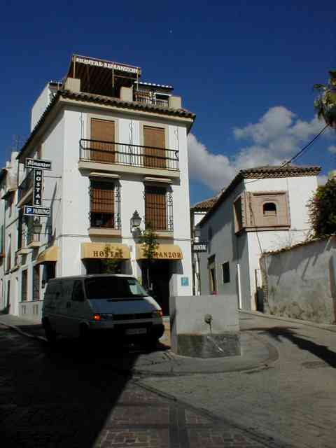 Qui a Granada arriviamo proprio nel giorno della festa de la Cruz, una festa che si svolge ogni anno il 3 di maggio. Trovare alloggio e' stato duro, proprio a causa dell'ondata di turisti venuti in citta' per vedere i festeggiamenti. Alla fine di innumerevoli telefonate con moltissimi alberghi, siamo riusciti a prenotare una stanza in un piccolo hotel un po' fuori dal centro storico di Granada, precisamente nella zona dell' Alhambra, sulla collina di La Sabika che domina la citta' di Granada. La zona intorno all'hotel e' tutta tapezzata di verde, c'e' un bosco molto grande, chiamato "Bosco dell'Alhambra" e vicinissimo c'e' la famosa fortezza con i suoi giardini e fontane dichiarata dall'UNESCO patrimonio dell'umanita'. Siamo avvantaggiati nella visita di questa meraviglia, poiche' abbiamo scoperto che possono entrarvi soltanto 8000 visitatori al giorno e la gente fa la coda gia' al mattino presto per procurarsi il biglietto. Cosi' domani potremo andare allo sportello al mattino presto, siamo a 5 minuti di distanza !
