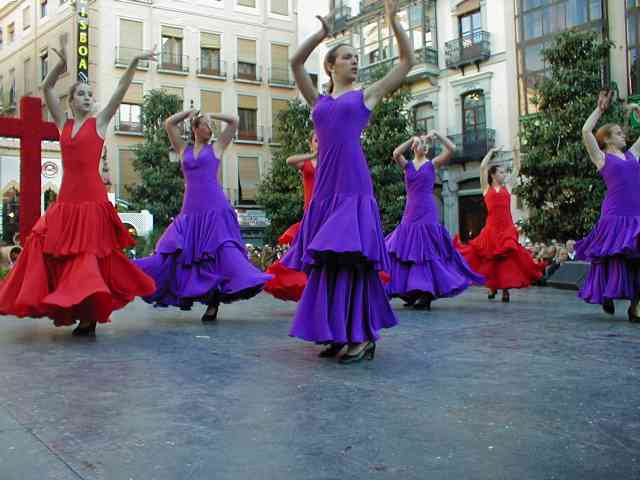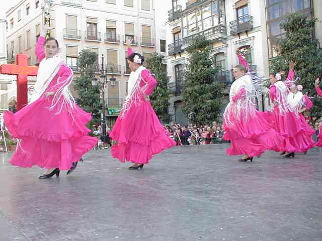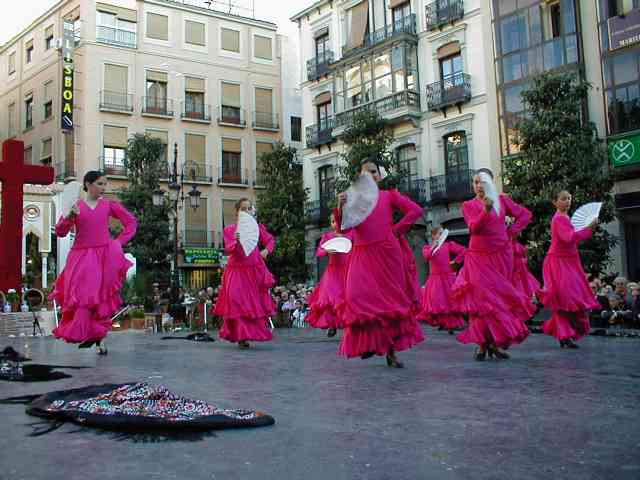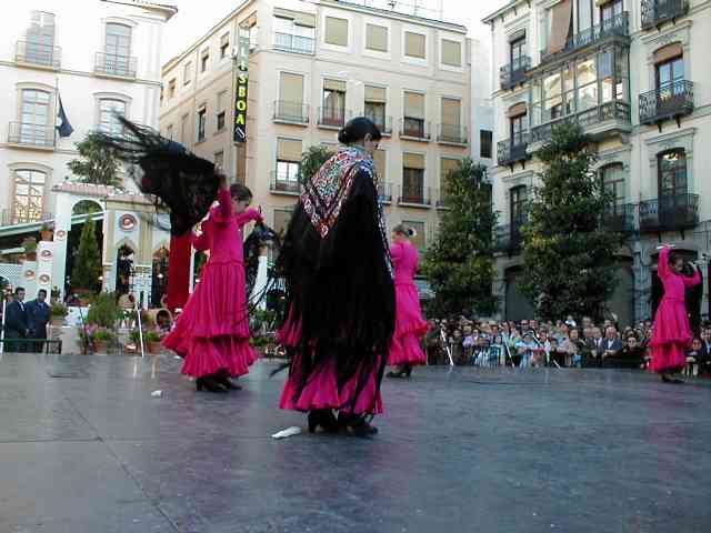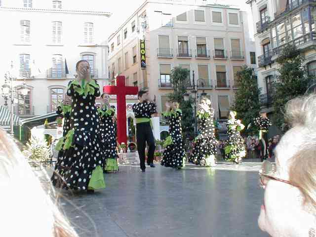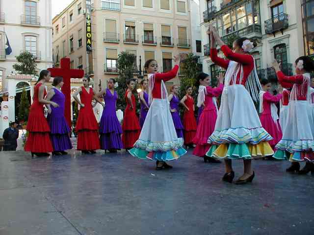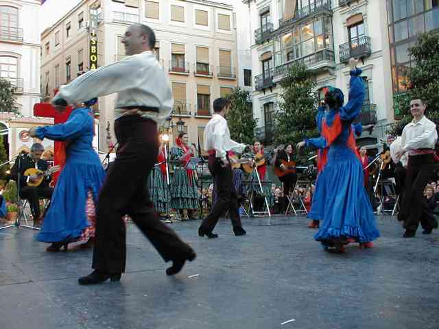 Ci siamo fermati in Plaza del Carmen dove era allestito un palco con spettacoli molto belli di flamenco e fandango di ballerine e ballerini in costume tipico, che abbiamo visto, estasiati, fino alle ore 21,00.