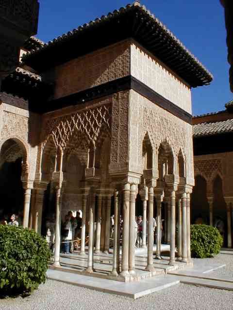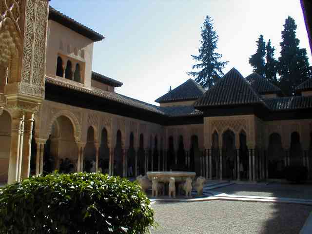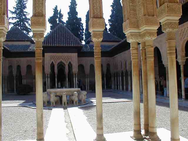L'Alhambra e' una specie di fortezza araba, difatti in arabo il nome "Alhambra" significa "Castello rosso" e fu costruita intorno al IX secolo. Una volta entrati nel complesso dell'Alhambra ci si trova catapultati in immensi giardini, palazzi e torri, come il Palazzo Nazaries con bellissimi muri con decorazioni a stucco, con soffitti di legno nodoso, con elaborate volte a nido d'ape, con sale e cortili dalle proporzioni perfette tutte circondate da fontane e vasche d'acqua. Insomma, una vera meraviglia!