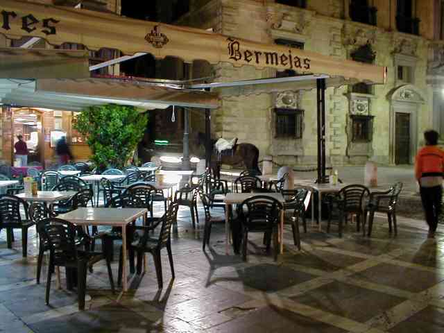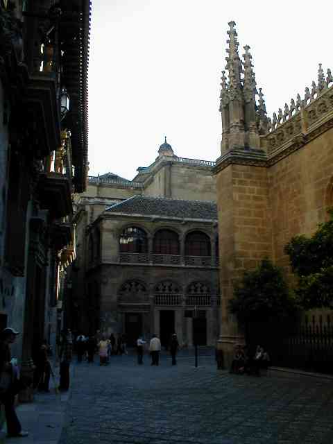 Nel pomeriggio abbiamo cercato di visitare la cattedrale e la cappella Real (dove c'e' un museo con oggetti appartenuti ai Re Ferdinando e Isabella) ma siamo arrivati ormai quando erano chiusi (sono aperti fino alle ore 19,00). Cosi' abbiamo girato un po' per le vie del centro guardando le vetrine dei negozi e poi siamo andati a cena in un locale arabo "Al Andaluz" in Plaza Nueva, dove abbiamo mangiato un falafel e un kebab (panini arabi). E poi verso le 23,00 siamo tornati al nostro albergo sulla collina con l'ultimo bus n. 30 diretto alla zona dell'Alhambra. Meno male che oggi non abbiamo avuto problemi con gli autobus come ieri!