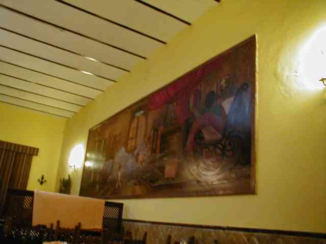 A pranzo siamo stati in un ristorante in Calle Medina 19 chiamato "Meson La Alcazaba", dove, con soli 9,00 euro a testa abbiamo mangiato primo, secondo e dessert e bevuto una birra. Andrea ha mangiato zuppa di verdure, filetto di maiale e gelato, mentre io mi sono presa un gazpacho (zuppa di cipolle ed altre verdure un po' piccante), carne di maiale al Roquefort (formaggio francese con un gusto simile alla nostra gorgonzola) e yogurt. Dopo pranzo siamo andati a farci i biglietti ferroviari per Siviglia per il giorno 11 maggio.