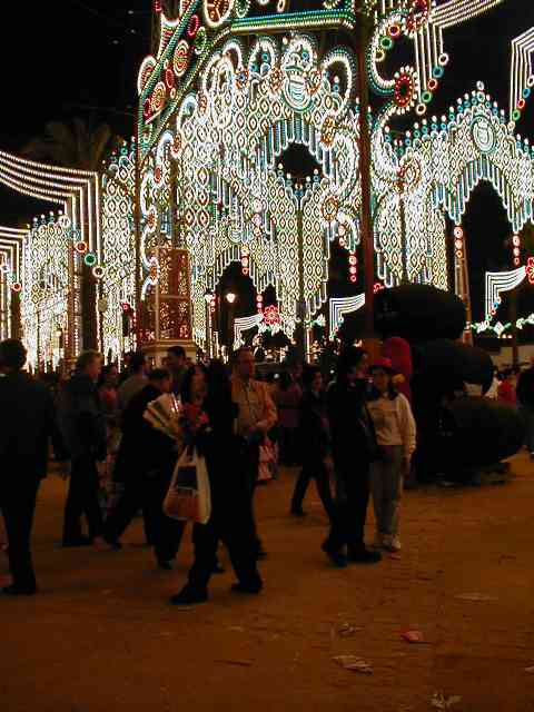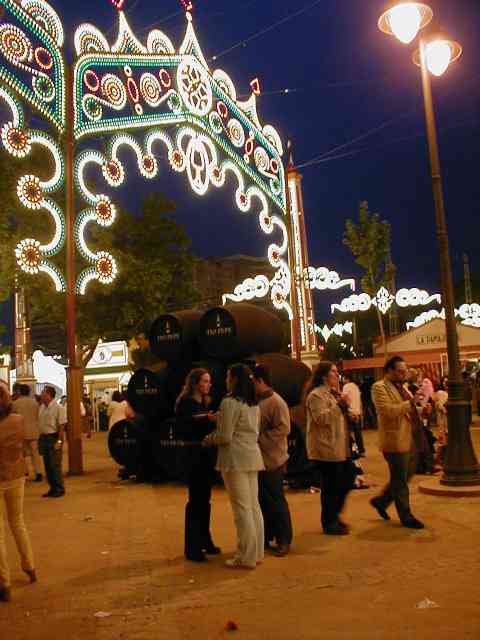 Alla sera abbiamo fatto un giretto nel quartiere fieristico, pieno zeppo di luci colorate e di stand, fatti a forma di casetta, di ristoranti, bar, associazioni di Jerez, ognuno dei quali proponeva tapas, bibite (birra e sherry) e tanta musica e balli di flamenco. Lungo tutto il percorso della feria potevamo ammirare bellissimi vestiti andalusi indossati da ragazze e signore. Tutt'intorno regnava una grande allegria, tipica degli Spagnoli, popolo allegro e festaiolo per eccellenza!